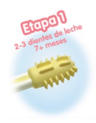 - ETAPA 1: El cepillo dental de aprendizaje Etapa 1 ayudara a tu hijo a acostumbrarse al uso del cepillo. Para niños con 2-3 dientes de leche. Rasca encia con punta de goma elástica, suave para las encias y con tope de seguridad.